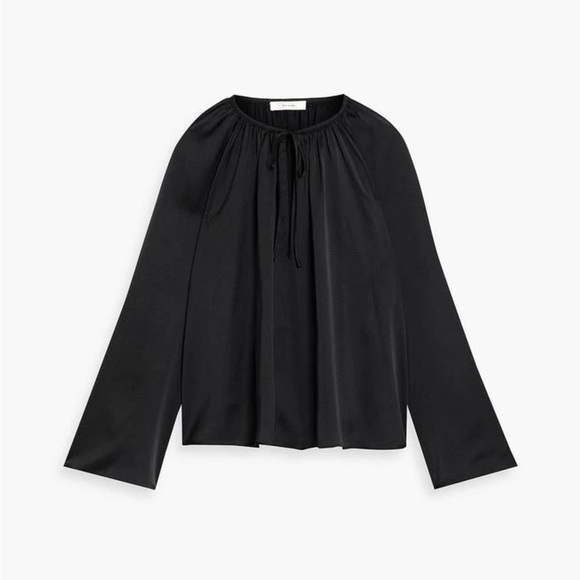 Frame Black Satin Long Sleeve V Neck Blouse