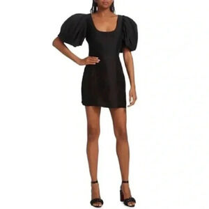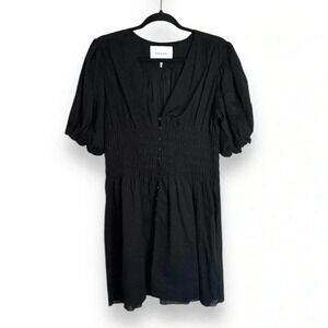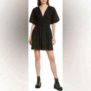 Frame Black Smocked Puff Sleeve Mini Dress Size Large
