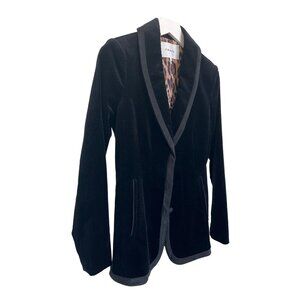 Frame Black Velvet Blazer Jacket With Leopard Print Lining
