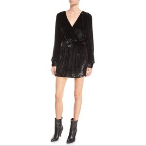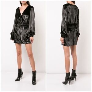 Frane Classic Black Velvet Metallic Cocktail Dress. V Neckline. Long Sleeves. Fit and Flare Silhouette. Mini Length. Slipover Style. Loose & Lightweight. Cute & Comfy. NWT / New with Tags. Great Condition. No Stains or Rips.