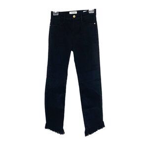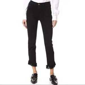 Frame Black Le High Straight Asymmetrical Fringe Hem Cropped Jeans Women’s Sz 24
