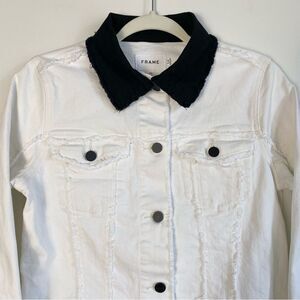Frame Block Denim Jacket Contrast Collar XS X-Small Off White Black Raw Hem