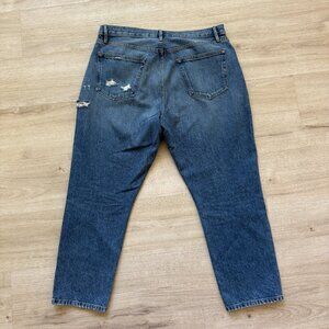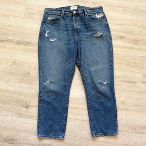 Frame Blue Denim Ankle Crop Distressed Button Fly 33