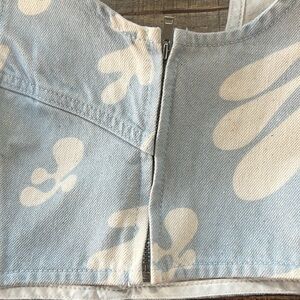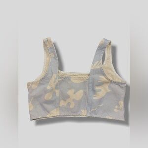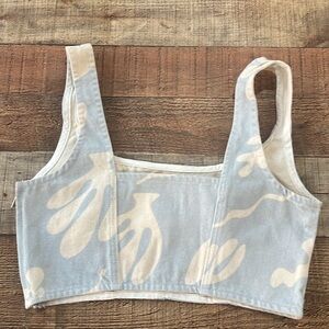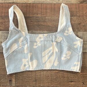 Frame Blue Printed Seamed Denim Bustier Cropped Tank Top Blue/White Small