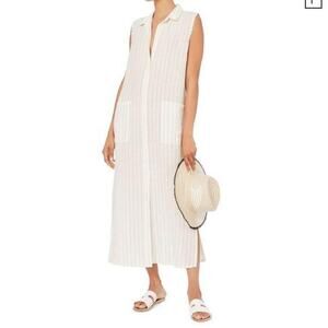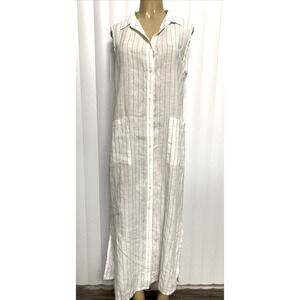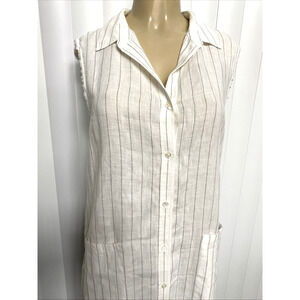 Frame Boyfriend Pinstripe Sleeveless Shirt Dress White Sleeveless Linen Button L