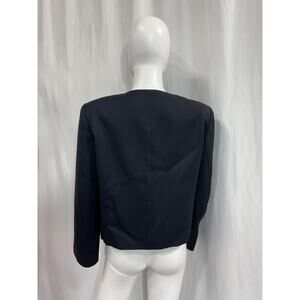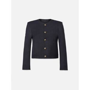 Frame Button Front Navy Jacket Size M: it features light shoulder pads for structure, bracelet-length sleeves, and clean patch pockets.