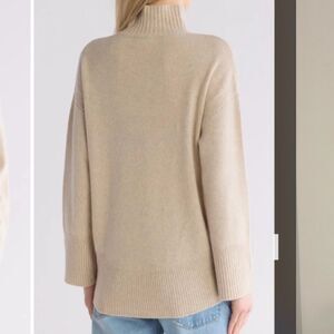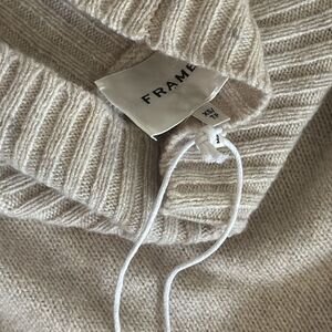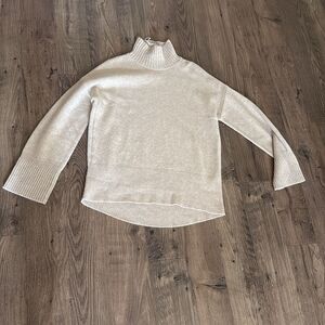 Frame Cashmere High-Low Turtleneck Sweater in Oatmeal Heather Size M