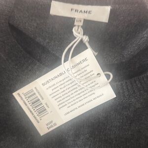 Elegant cashmere charcoal sweater by Frame. Features long sleeves and a classic fit. Perfect for layering.