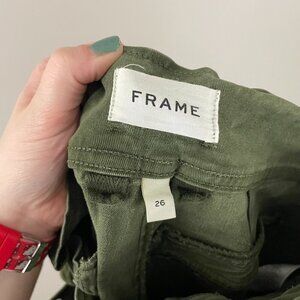 Frame Cinched High Rise Wide Leg Pants in Military Green Size 26