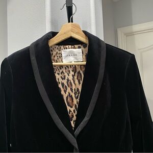 Frame Classic Velvet Black Denim Blazer Velour Jacket Leopard Print Interior 8
