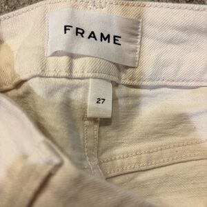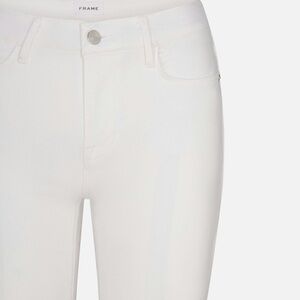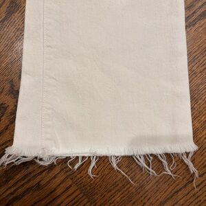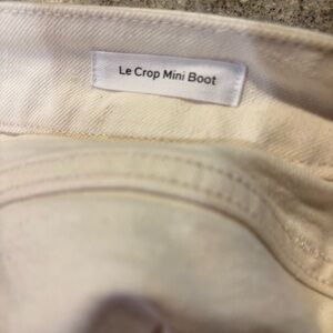 Our best-selling cropped boot-cut silhouette featuring a vintage-inspired medium wash. Au Natural Creme White but not bright white, a little off white. Designed with a comfortable contour waistband that’s form-fitting at the top and tapers out from the knee, style this jean with an oversized blazer, or voluminous blouse.