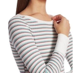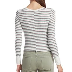 Frame Cropped Stripe Knit Top size XS White Brown Green