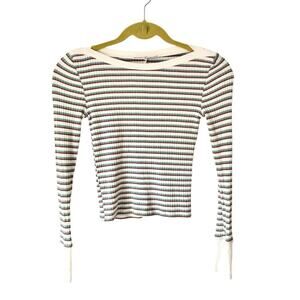 Frame Cropped Stripe Knit Top size XS White Brown Green in great condition. Soft and stretchy. Measurements laying flat chest 14 inches across and length 17 1/2 inches long