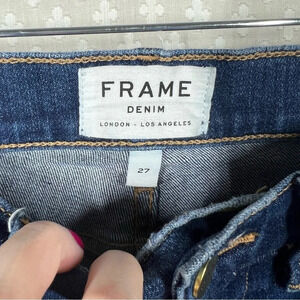 Frame Dark Wash Distressed Le High Skinny Jeans