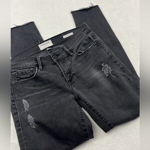 Frame Denim 28, 6 Le Skinny de Jeanne Black Distressed Jeans