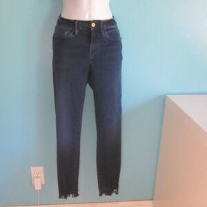 Frame Denim 28 Le Skinny De Jeanne Classic Mid Rise Skinny Frayed Tapered Hem