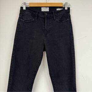 Frame Denim Black Le High Skinny Raw Step Hem Jeans Womens 27 Fall Denim Classic