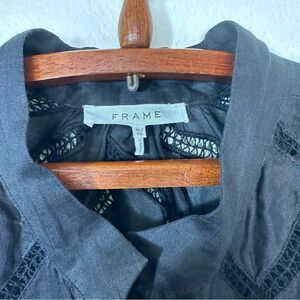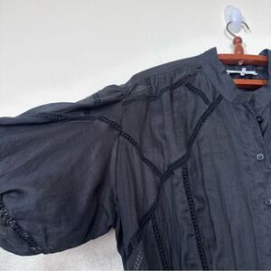 Frame Denim Black Mini Dress with Puff Sleeves and Mandarin Collar