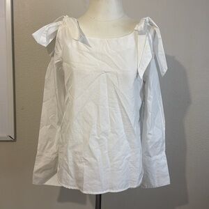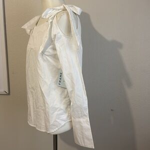 Frame Denim Blanc Bow Tie Cold Shoulder Blouse Preppy Business Casual