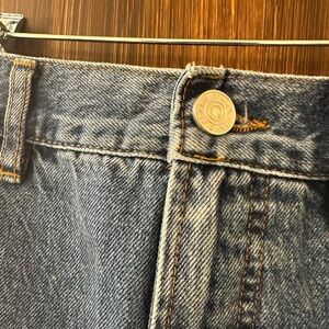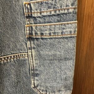 indigo blue cotton high waist straight leg two side slit pockets two side patch pockets two rear welt pockets