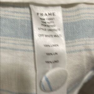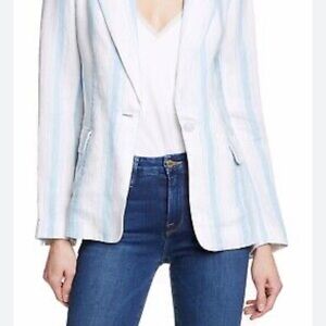 Discover the perfect blend of style and comfort with the Frame linen Blue and White Striped Blazer. This blazer, crafted from lightweight fabric, offers a fresh nautical-inspired look ideal for spring and summer. Its classic cut ensures a versatile addition to any wardrobe, suitable for both casual and semi-formal occasions. Extra covered button