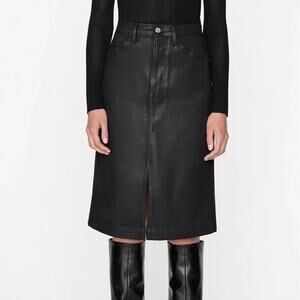 Frame Denim Coated Noir Black Mini Skirt Size 25 High Rise Leather Look