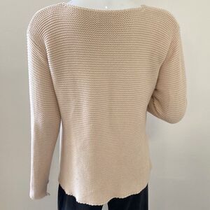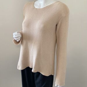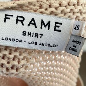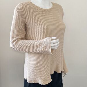 This cream sweater from Frame Denim features a classic crew neckline and a ribbed texture that adds subtle visual interest. Its lightweight knit and relaxed fit make it a versatile piece for casual occasions, offering both comfort and style. In good preowned condition.