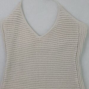 Frame Denim Crochet Halter Neck Bodysuit Off White Size SP