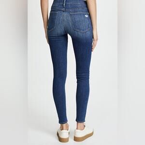 Frame Denim Distressed Le High Skinny Jeans in Hilltop Size 25 • Brand: Frame Denim • Color: Blue and white (tag says Hilltop design) • Pattern: None • Size: 25 • Condition: NWT (new with tags) • Material: Cotton, polyester, and elastane • Approximate measurements: Waistband (23 inches) and length (36 inches) • Other information: Distressed skinny jeans. Medium blue color. Shredded holes present, as well as a faded design. Raw hemline. Button fly and zipper closure. Five pocket design. Ankle length.