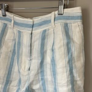 Frame Denim Fine Stripe Linen Shorts Off White Blue Sz 6