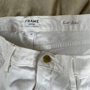 Frame denim forever Karlie flare jeans in white. Frame x Karlie Kloss. 99% cotton 1% elastane. In perfect condition. Absolutely no stains or flaws. Size women’s 32. Approximate measurements: