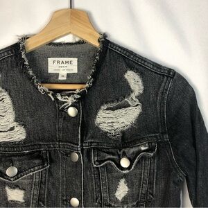 Frame Denim Gaven Black Distressed Rigid Hem Denim Jacket XS