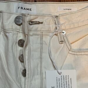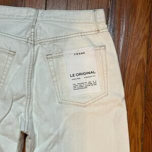 Frame Denim High Rise Straight Fit Distressed Jeans Off-White Rips Le Original