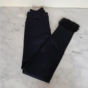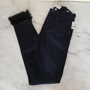 Frame Denim Highrise Skinny Dark Blue Fringe Jeans 25 NWT