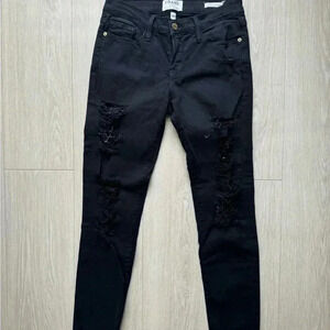 Frame Denim Jeans Women's Le Skinny de Jeanne Distress Made In USA Black