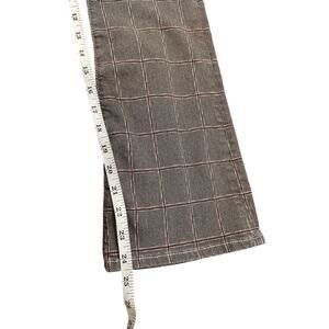 Frame Denim Le Crop Mini Boot Cut Pants Window Pane Plaid, size 27. There is some faint bleedthrough on the fabric. Please see photos #8 & 9 for details. Otherwise great condition. Gray, burgundy, and cream. See photos for measurements.
