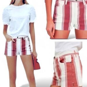 Frame Denim Le Cutoff Fiery Red Stripe Jean Shorts