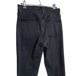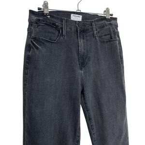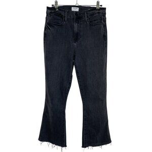 Stylish cropped flare jeans with a subtly distressed hem for a modern look.