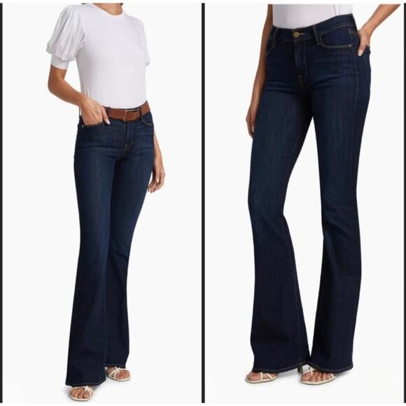 Frame Denim Le High Flare Jeans Womens 30 Dark Wash Cowgirl Rockabilly Boho USA