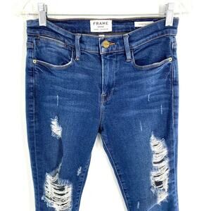 Frame Denim Le High Skinny Ankle Womens Size 26 Jeans Blue Distressed Tapered
