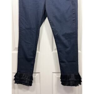 Tiered layers of fringe add instant drama and opulence to these dreamily soft black jeans. Lightweight and stretchy, these skinnies fit like a glove, perfect for your next night out.