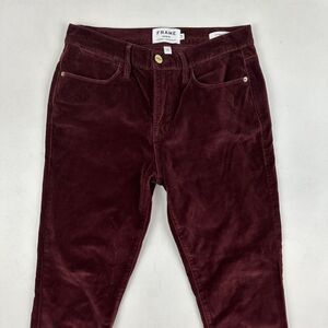 Frame Denim Le High Skinny Pinot Velour Velvet Burgundy Jeans Size 26 Stretch