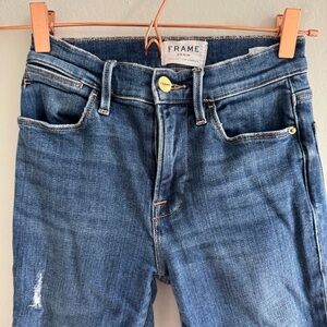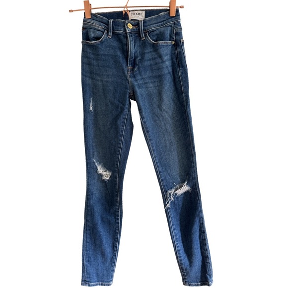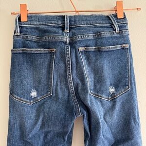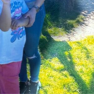 These are a pair of my favorite jeans, but my big ol’ legs, are just not agreeing with them anymore. Very flattering on the booty, the perfect pair of skinny mom millennial jeans 😄 I threw a picture of what they look like being worn for reference.