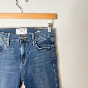 Frame Denim Le High Skinny Stagger Hem in Woodhaven.