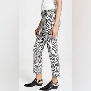 TAGS: frame, denim, jeans, designer, luxury, mid rise, straight leg, zebra, animal print, stripe, grunge, streetwear, rock and roll, versatile, concert