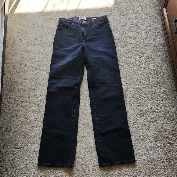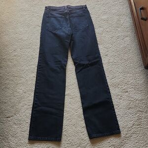 Classic straight-leg women's jeans in dark blue. Clean, versatile styling for everyday wear. Comfortable mid-rise fit with practical pockets. Durable denim that pairs easily with tops and jackets.