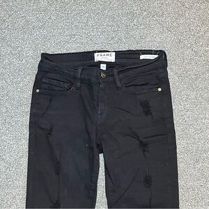Frame Denim Le Skinny de Jeanne Distressed Jeans Womens Size 24 Black Stretch