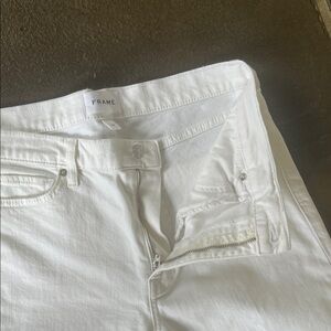 Stylish white flare jeans. Wide leg design. Perfect for any occasion.