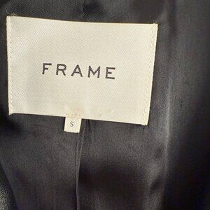 Butter soft leather blazer jacket with one button closure and front functioning flap pockets. Excellent condition, worn once. Tailored fit.