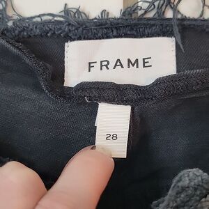 Frame Denim Women's Cut off waist mini boot slit denim in film noir size 28. Excellent preowned condition from smoke free and pet free home.